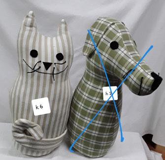 Die TürstopperKatzen/Hunde sind ca. 35 - 40 cm gross, aus bunten Baumwollstoff.